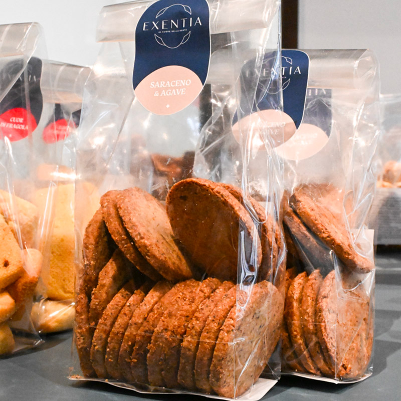 I Biscotti al grano saraceno e sciroppo d’agave Exentia nascono dall’incontro tra rusticità e delicatezza. La farina di grano saraceno dona carattere e una piacevole nota tostato-intensa, mentre lo sciroppo d’agave regala una dolcezza morbida e naturale, mai eccessiva.
