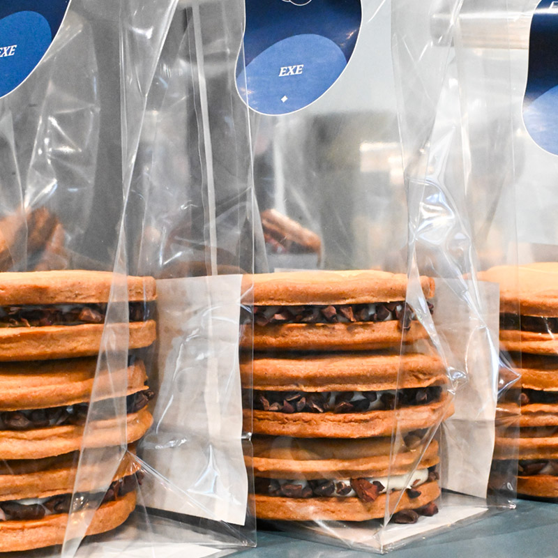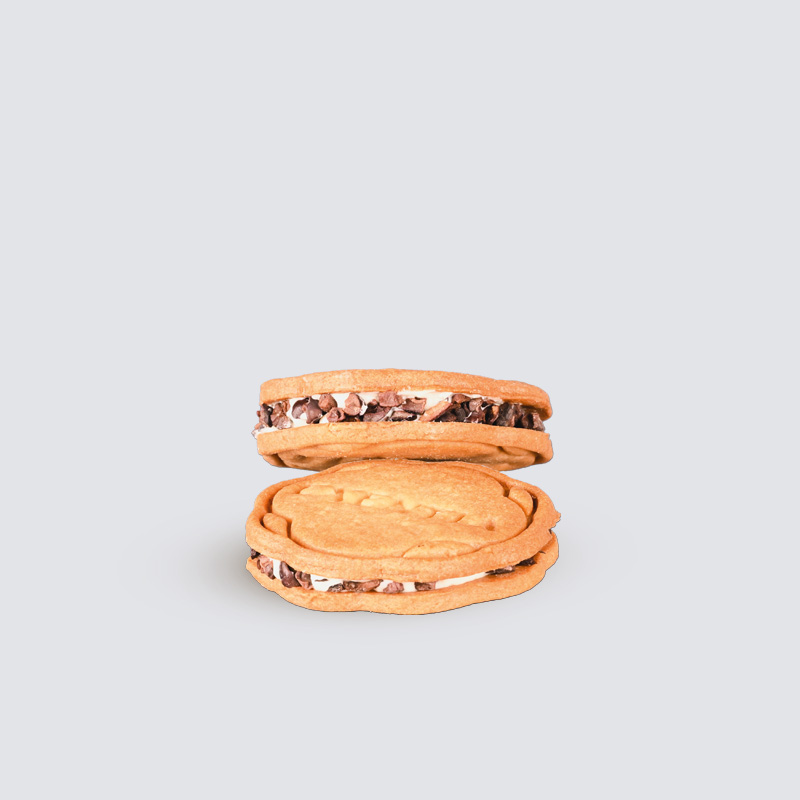 I Biscotti ripieni Exe con crema al cioccolato bianco e fave di cacao sono un incontro elegante tra dolcezza e intensità. Due friabili gusci di frolla al burro racchiudono una crema vellutata al cioccolato bianco, arricchita da croccanti fave di cacao tostate che donano carattere e una piacevole nota aromatica.